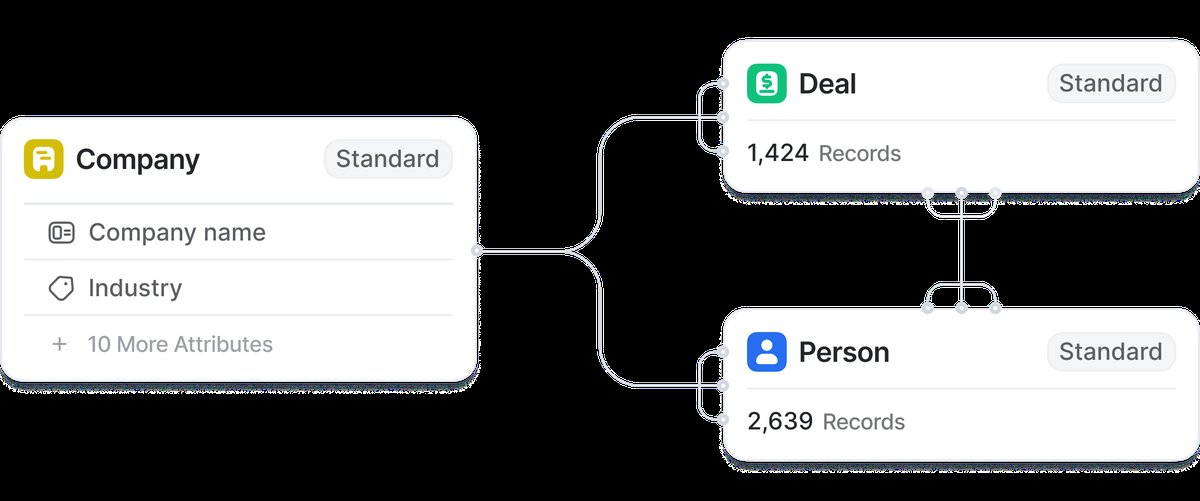 Relationship attributes are how records in different objects reference each other. A deal linked to a company, a person linked to a deal, these connections are what turn a flat database into something that actually reflects how your business works.