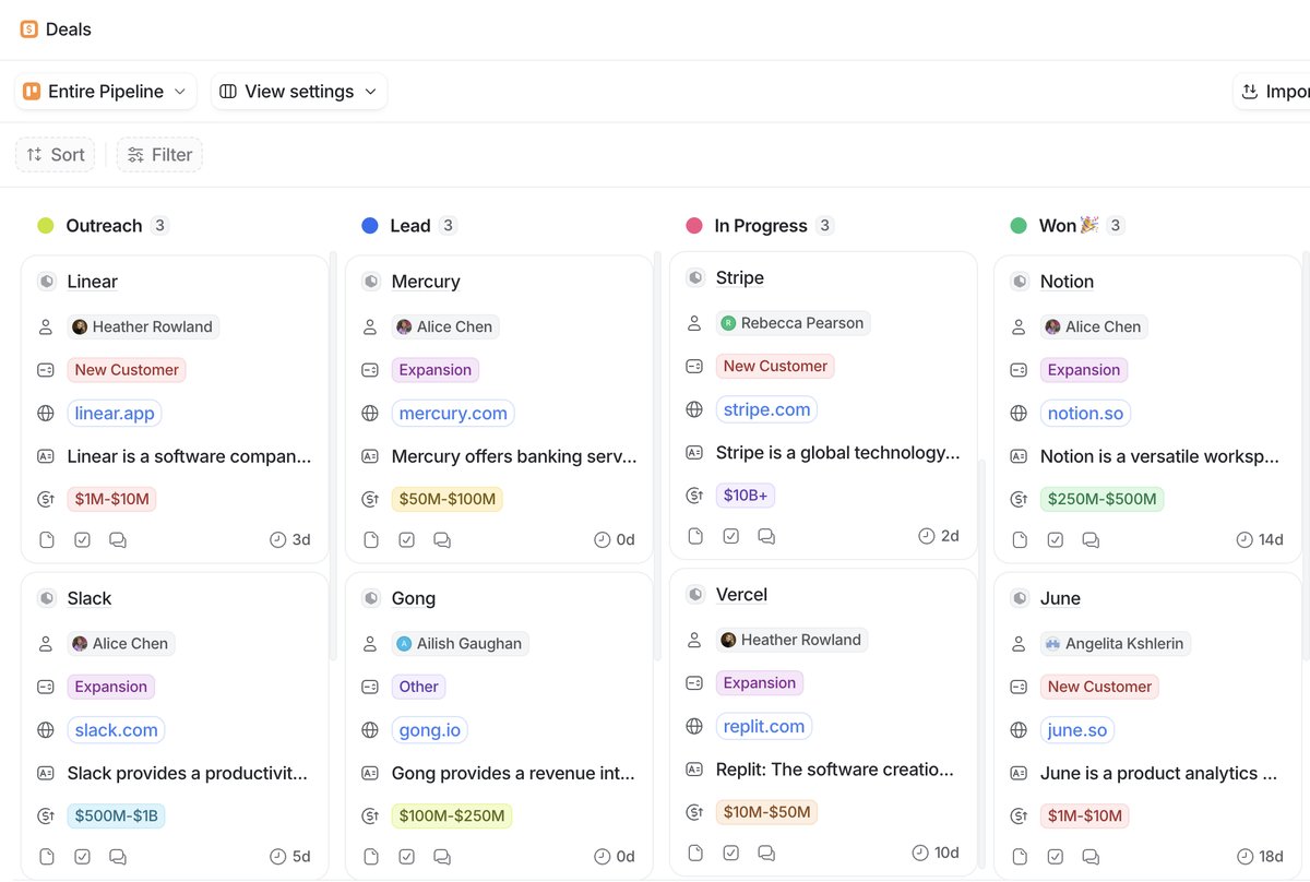 - New business vs renewals. The stages for acquiring a new customer are different from the stages for renewing an existing one. For renewal-specific workflows, see how to track customer renewals in Attio.