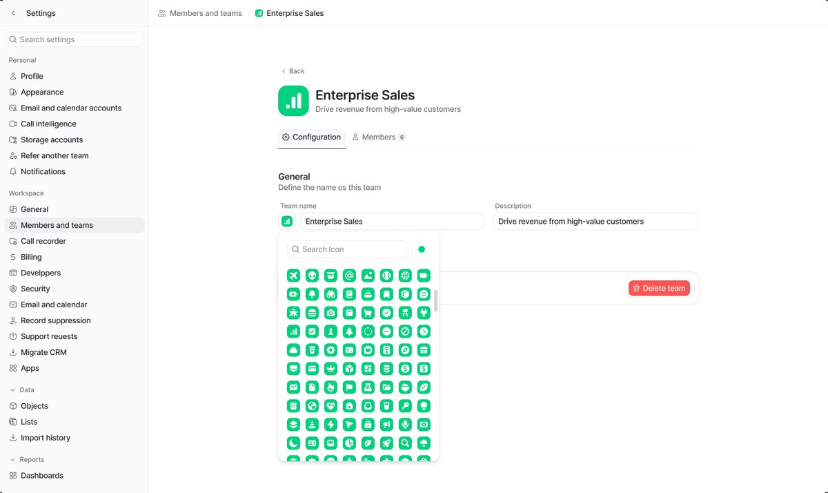 Teams in Attio let you group workspace members and manage permissions at scale.